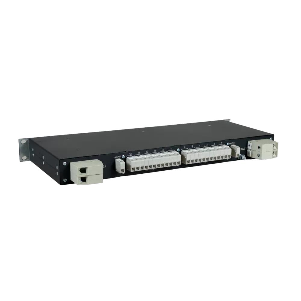 Панель распределения питания 48В DC 100А 1U, 2 ввода, Возможность установки до 6 автоматических выключателей втычного типа In до 30А на каждый ввод Миниатюрные автоматические выключатели втычного типа заказываются отдельно. Возможен заказ ПРП в сборе с автоматическими выключателями. Номинальный ток автоматических выключателей от 2А до 30А