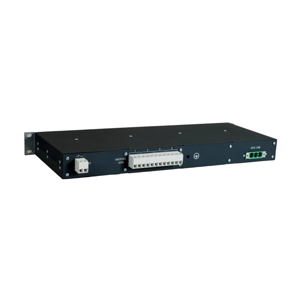 Панель распределения питания переменного тока Un 230В, In 63A, 1U. Подключение через клеммы. По умолчанию установлены автоматы Nader Вводной С63А, УЗИП Citel, автоматы нагрузки 4хС20А. Контакт состояния срабатывания УЗИП. ВНИМАНИЕ! Возможен заказ пользовательской конфигурации автоматов.