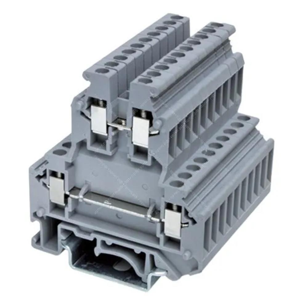 RUKK 3 - Клемма проходная, CHIKU; Ширина: 5,2 мм; Цвет: Серый; Тип подключения: зажим Винтовой; Количество точек подключения: 4; Количество ярусов: 2; Максимальное сечение провода: однож./многож.: 4 мм² / 2,5 мм²; Номинальный ток: 32 А; Номинальное напряжение: 500 В; Способ монтажа: DIN-рейка; Материал: Полиамид; Класс воспламеняемости: V-0; Нижняя рабочая температура,°С (при статическом применении): -60; Верхняя рабочая температура, °С (с учетом самонагрева при номинальных параметрах): 110