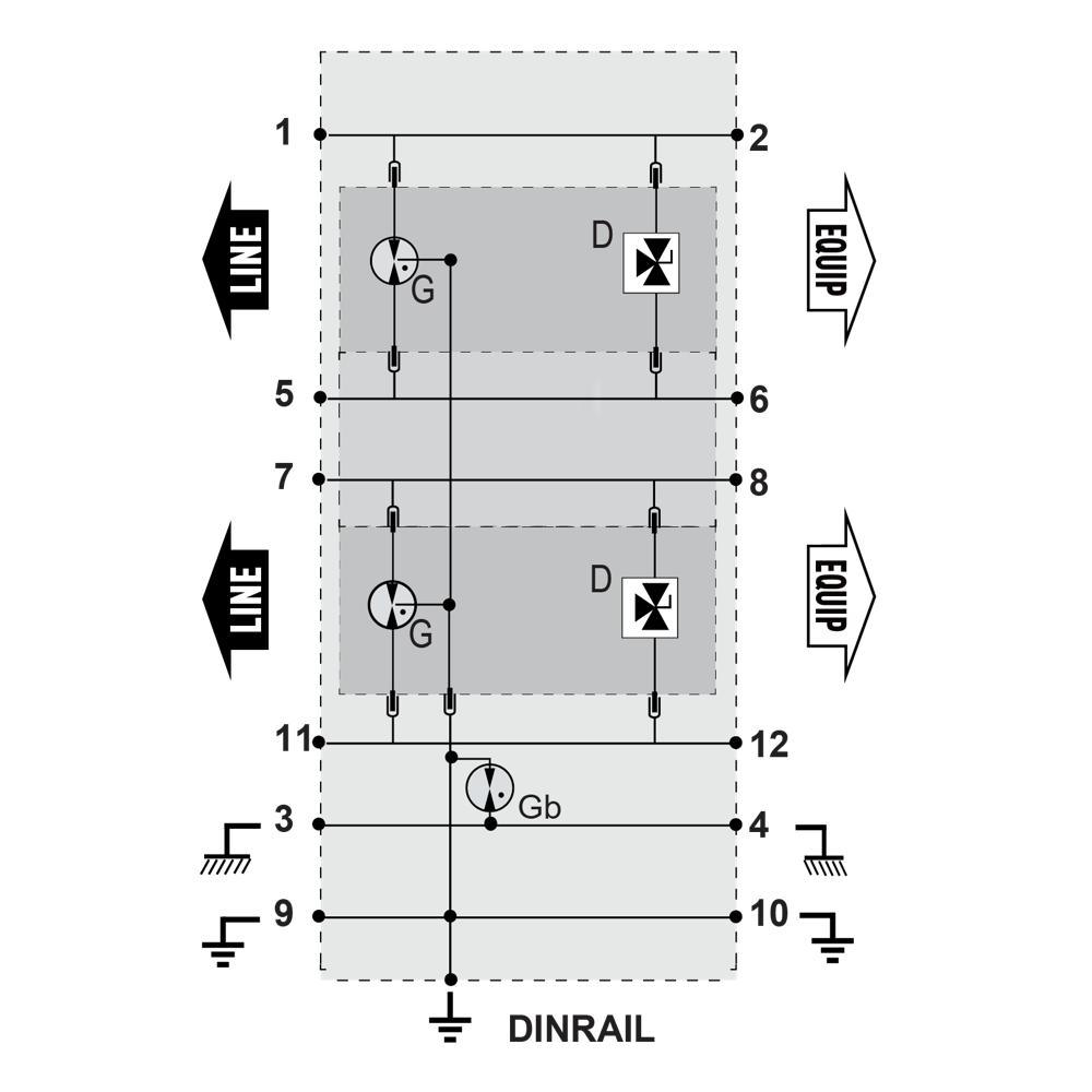 УЗИП на DIN рейку 2 парный для линий данных - Un: 24 В - Сеть 24 В линия, высокоскоростная Iimp 5kA In 5 kA Imax 20 ka, без добавления сопротивления и индуктивности в цепь